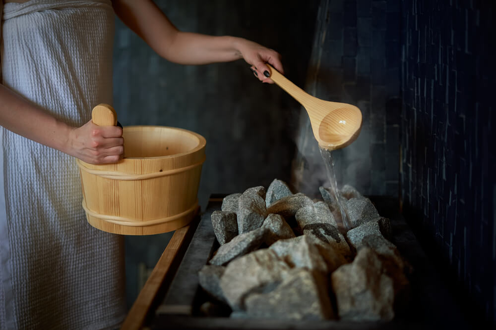 サウナ室で湿度が足りないときに自分で調整できるのが「セルフロウリュ」です。セルフロウリュできるサウナ室には、水が入ったバケツが置いてあり柄杓などが置いてあり、熱した石(サウナストーン)にかけるタイプや、壁に水を直接かけるタイプなどがあります。